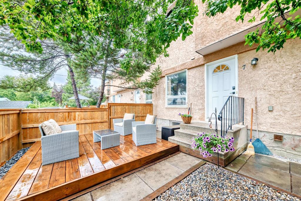 Located directly across from Olds College, this charming row-townhouse is a fantastic opportunity for first-time buyers, investors or students. With a total of 3 bedrooms and 2 bathrooms, this attached Townhouse style condo unit offers comfortable and functional living just steps away from campus and local amenities. The main floor boasts an open-concept layout that seamlessly connects the kitchen, dining area and living room. A convenient 2 pce bathroom is also located on the main level for guests and daily use. Upstairs, you'll find three well-sized bedrooms and a full 4 pce bathroom, providing plenty of space for a family or roommates. The basement is partially developed, featuring a recreation area perfect for a home office, playroom, additional lounge space or another bedroom. The large laundry, storage and furnace room provides added utility. There is also a newly fenced front out door space with new deck, as well as a back deck on the North side of unit. Whether you're looking for a low-maintenance home or a reliable rental investment, this property delivers both value and location. Don’t miss your chance to own a well-situated unit in the heart of Olds. Contact your local realtor today to schedule a viewing!