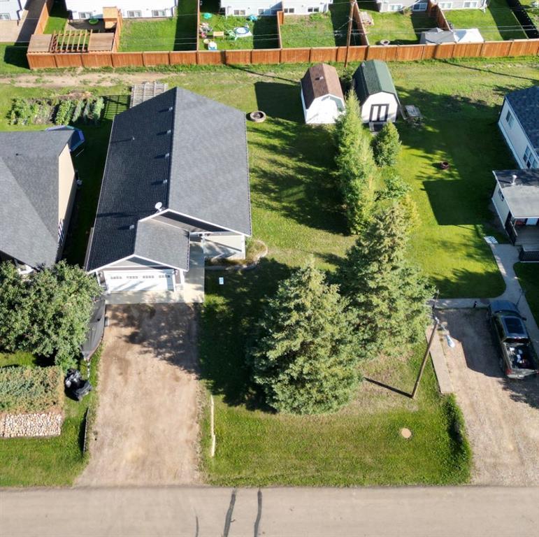 Discover this fantastic in-town home built in 2016, offering a modern and clean feel throughout with stylish white cabinetry and contemporary finishes. The main floor features 3 bedrooms, 2 bathrooms, and a convenient laundry area, with an open-concept kitchen, dining, and living space perfect for family living. The kitchen is well appointed with appliances, dual pantries, and easy access to the back deck right off the dining area—ideal for entertaining. The spacious primary bedroom includes a full ensuite and double closets. An attached heated garage with overhead heat and a handy side door adds a ton of comfort for our Alberta winters. The full, unfinished basement is wide open and ready for your creative touch. Outdoors, you’ll appreciate the mature spruce trees, shed, gazebo pad, and both front and back decks. With its great location close to amenities, this property is move-in ready and full of potential—come take a look today!