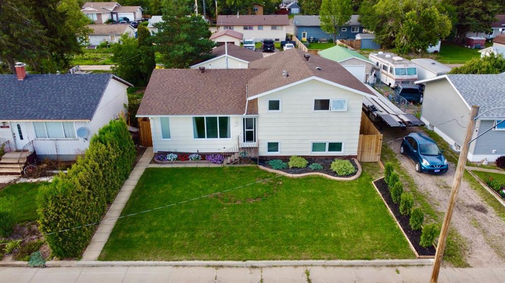 Located in a fantastic spot in St. Walburg, this spacious and well-maintained 4-level split home offers 1,308 sq. ft. of living space with 2x6 construction, directly across from the K-12 school and close to the golf course. Featuring 4 bedrooms and 2.5 bathrooms, the home welcomes you with a large, open kitchen and dining area that leads to a wrap-around backyard deck—perfect for entertaining. The kitchen is well-organized with ample cabinetry and updated countertops (2020). The second level includes three bedrooms and a spacious 4-piece bath, while the lower level features a fourth bedroom and a 3-piece bath, ideal for guests or a growing family. Additional living spaces include a main floor living room, a generous rec room on the lower level, and a bonus room in the basement—great for a gym, playroom, or home theatre. Other stand out features are a central vacuum system, water softener, newer furnace and hot water tank, and new shingles installed in 2019. The insulated 24' x 26' double detached garage with dual 9’ x 7’ doors offers ample storage and parking. The backyard is private and beautifully landscaped with mature trees, flower beds, garden space, and all-new fencing. Located near Turtle and Brightsand Lakes, St. Walburg is a vibrant community offering plenty of recreational opportunities. This move-in ready property is in excellent condition and priced to sell—book your showing today!