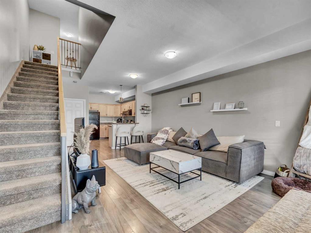 Come and enjoy Maintenance-free living at this attractive townhouse condo! This amazing 2 bedroom unit has plenty to offer, with on open main floor layout and an incredible upper level floor plan. Both bedrooms have vaulted ceilings and their own private balconies, with the primary bedroom also offering a 4pc ensuite bathroom and a large walk-in closet. Laundry closet is conveniently located upstairs near the bedrooms, along with an additional 4pc bathroom. The main floor features a spacious kitchen with sit-up breakfast bar. The large living room offers plenty of space, lots of natural light and an exit to your patio area that is perfect for BBQing. One covered titled parking stall included, with plenty of additional on-street parking easily accessible. All this in a wonder neighbourhood, with schools, parks, playgrounds, walking paths, and incredible views close by. This is the perfect place to call home and is very well maintained and ready for you to just move in and enjoy! Call today for your viewing!