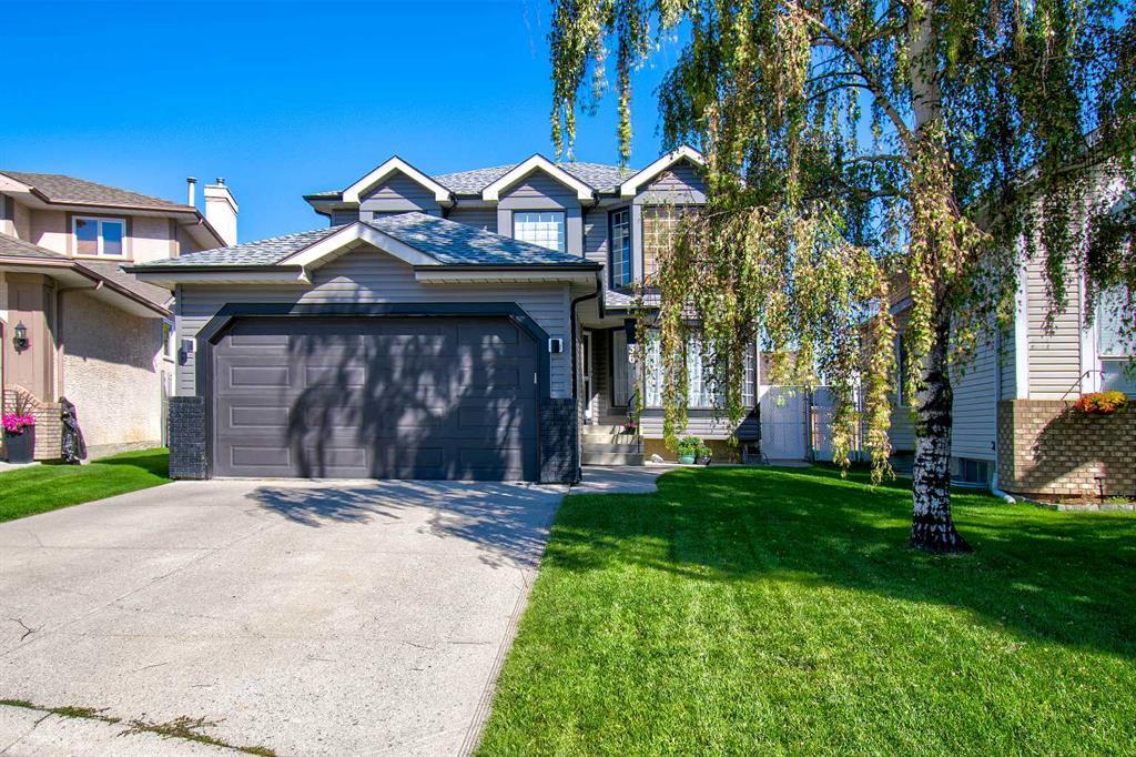 Fabulous, friendly CUL-DE-SAC location of this FULLY DEVELOPED family home with NEW SIDING AND EAVES. Step inside to the welcoming double-height entrance with SUN DRENCHED den/ flex room at the front of the house ideal for home office or additional living space. 2 piece bath, garage entrance, and laundry with NEW WASHER AND DRYER (2024) and MUDROOM are centrally located on the main level and flow into the very spacious kitchen and living room. Large picture window and gas FIREPLACE compliment the living room. Black appliances and granite transformations of counters and backsplash plus silgranite sink make for a striking kitchen. Central island and large dining area great for the whole family or when entertaining. Head to the lovely back yard with 3 levels of NO MAINTENANCE DECKING (Trek), FIREPIT AREA AND GAZEBO, NO MAINTENANCE FENCE plus lots of grassy area and LOTS OF PERENNIALS INCLUDING RASPBERRY, CURRANT AND CONCORD bushes for the jam maker. 2 gated accesses from the BACK LANE for RV PARKING, utility trailers, boats, etc. Upstairs features 3 bedrooms, main bathroom and large, primary bedroom with ensuite with separate tub, shower, and sizeable walk-in closet. Basement has NEWER CARPET and is fully developed with large, fun rec room, bedroom with 3 piece ensuite that is also accessible from main area. GREAT LOCATION in the community just a quick walk to lots of area shopping, K-9 Catholic school, Catholic High school, Vivo Rec Centre and busing. A short drive out of the community to major roadways. MOVE RIGHT IN AND ENJOY!