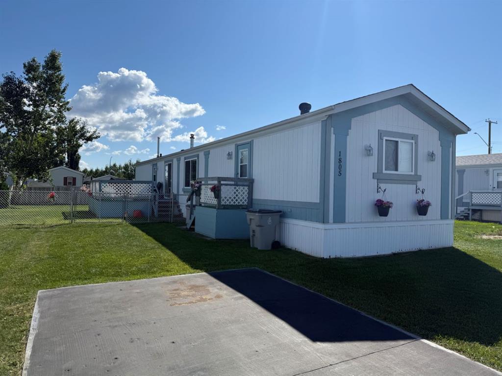 Welcome to this spacious mobile home located in the quiet community of Stardust Village. Situated on a dead-end cul-de-sac, this home offers a peaceful setting within walking distance to the golf course in the summer and groomed trails for cross-country skiing in the winter. Step inside to a large entryway with a convenient coat closet that leads into the bright and open living room, featuring a large window for plenty of natural light. The living room flows seamlessly into the dining area and kitchen, creating a welcoming space for family and friends. Off the kitchen, you’ll find a back entry with washer and dryer and plenty of extra room for storage or gear. The primary bedroom is privately located at the back of the home and boasts a walk-in closet along with a 4-piece ensuite. At the opposite end, two additional bedrooms and another full 4-piece bathroom provide comfortable living for the whole family. Outside, enjoy a fenced yard complete with a deck accessible through patio doors off the dining area—perfect for relaxing or entertaining. A storage shed and parking pad off the road add extra convenience. This move-in ready home combines comfort, space, and a fantastic location—perfect for year-round living.