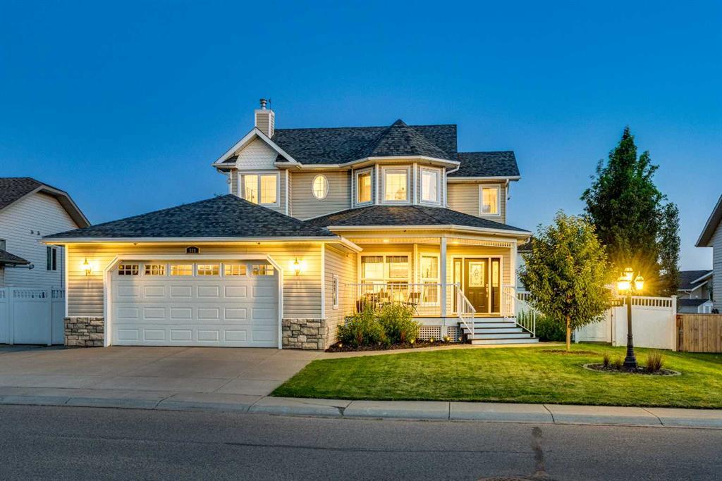 Welcome to this beautiful 2-storey home that perfectly blends timeless curb appeal with modern comfort. The inviting exterior boasts a classic veranda, stone-accented garage, and warm exterior lighting that enhances the property’s character and charm. Step inside to a large foyer that sets the tone for the spacious layout. The main floor features a bright living room and an open concept design anchored by a cozy 3-sided fireplace. The kitchen is designed for both everyday living and entertaining, offering a central island with seating, corner pantry, and abundant cabinetry and counter space. Just off the dining area, a garden door opens to a large back deck with natural gas hook-up for BBQ, overlooking the fully fenced backyard complete with a shed, play center, firepit area (under the current pool), and plenty of room for family fun. A main floor office (or potential bedroom) is conveniently located next to a 2-piece bath. Rounding out this level is a large laundry room with sink, closet, and garage access. Upstairs, the primary retreat is a true highlight, offering two closets—one a spacious walk-in—and a luxurious 5-piece ensuite with dual sinks, a soaker tub, and separate shower. Two additional bedrooms and a full bathroom with dual sinks complete the second level. The fully developed basement features high ceilings, large windows, and a spacious recreation room—perfect for movie nights and gatherings. A generous fourth bedroom and three-piece bathroom finish off the lower level. This home is ideally located across the street from beautiful Anderson Park, complete with walking paths, a gazebo, tranquil streams, a fountain, and trees lit up at Christmas. Close to schools and downtown, it offers exceptional space, comfort, and style in a family-friendly setting.