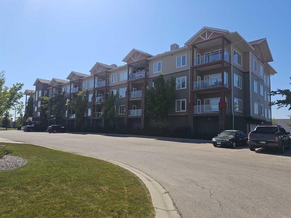 Welcome to this amazing CORNER UNIT in Bridgestone Manor, maintained 55+ complex in the growing community of Olds! This incredible 2-bedroom, 2-bath home offers an open, bright, and spacious layout with ample storage, in-suite laundry, and heated secure parking with locked storage. The open-concept kitchen/living room is a true highlight, featuring stainless steel appliances, plenty of counter space and a large island with eating bar for entertaining. Off the eating area walk onto the corner deck that provides ample amount of shade during the hot summer days. The large primary bedroom is a peaceful retreat, complete with its own ensuite featuring a walk-in shower, plus a walk-in closet for all your storage needs. The second bedroom also features two closets for added storage and convenience. The main bathroom is centrally located, making it easily accessible from any room. Your laundry is made simple with a full-sized, stacked washer and dryer, and the laundry room has plenty of space for extra storage, plus room for a freezer. The complex includes a resident’s party room on the main level and plenty of visitor parking out front. Perfectly located beside the Cornerstone Shopping Center, you’ll enjoy the convenience of Walmart, grocery stores, banking, restaurants, and more just a stone’s throw away! Very peaceful and quiet place to call home. Make this beautiful home yours today!!