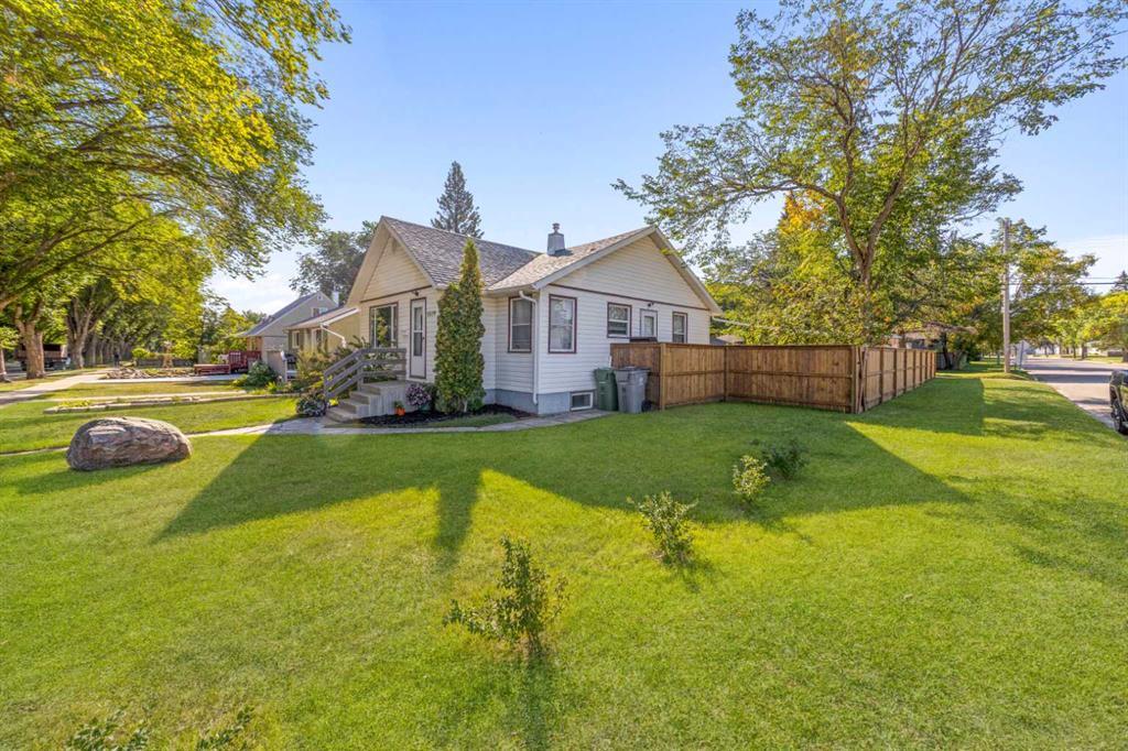 Don’t miss this fantastic starter home or investment opportunity! Situated on a desirable corner lot across from green space and walking distance to the outdoor pool, this charming bungalow offers a spacious backyard with new fence with alley access and is nestled on a quiet, tree-lined street. Many important updates have already been completed, including upgraded electrical, attic insulation, newer siding, windows, exterior doors, eaves, water heater. Inside, the bright and welcoming eat-in kitchen is filled with natural light and flows seamlessly into the generous living room with original hardwood flooring. Two comfortable bedrooms and a large bathroom complete the main floor. The full basement provides plenty of potential for future development—making this home an excellent choice for both today and tomorrow.