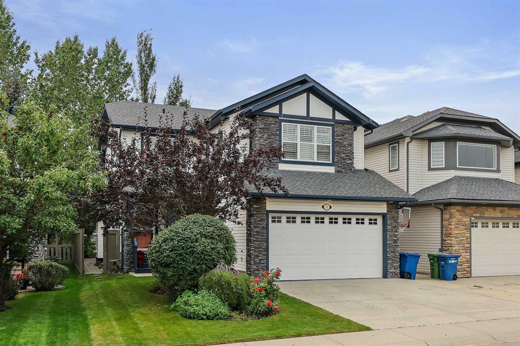 Welcome to this beautifully updated executive home with over 3000 sq ft of developed living space that has a SUNNY SOUTH backing yard with mature trees that BACKS ONTO GREEN SPACE in the heart of Airdrie's Top Community of COOPERS CROSSING. The main level layout is outstanding with a large granite island/granite countertops, tons of cupboard space, updated subway tile backsplash, high quality stainless steel appliances (Bosch fridge, LG stove, Faber hood fan), Miele dishwasher, large walk through pantry, pot lights, modern hexagon tiled gas fireplace feature, built in ceiling speakers/sound system, 9 ft ceilings, a funky updated half bath and a sunny OPEN CONCEPT layout with luxury vinyl plank flooring that seamlessly connects the living room to the kitchen and the large dining room. Step out back into the well manicured sunny south facing fully irrigated backyard that backs onto green space to enjoy the composite deck with outdoor speakers (connected to the internal sound system), a retractable awning to beat the heat and mature trees that offer ultimate privacy. The upper level greets you with the large upstairs bonus room that rocks a soaring 10 ft ceiling, hardwood flooring and a perfectly installed built-in feature with tons of storage that sets this bonus room apart from others. Down the hall the large primary bedroom retreat hosts TWO his & her walk-in closets, more built-in speakers and a recently updated 4 piece ensuite bathroom with bright & light modern tile work including a fully tiled shower, a new quartz vanity and a deep soaker jet tub. The spacious 2nd and 3rd bedrooms upstairs are conveniently located next to the 2nd full bathroom that has also been upgraded with new tile flooring and shower subway tile. The fully developed basement has a large family room with more built-ins, a den and another gas fireplace that is perfect for family movie nights or as an exercise space. While adjacent is another full bathroom (with heated floors) and the 4th and 5th bedrooms (5th Bedroom currently being used as an office). Don't lift a finger as this well designed home is move-in ready with an amazing location and quality finishes/updates that must be viewed to fully appreciate.