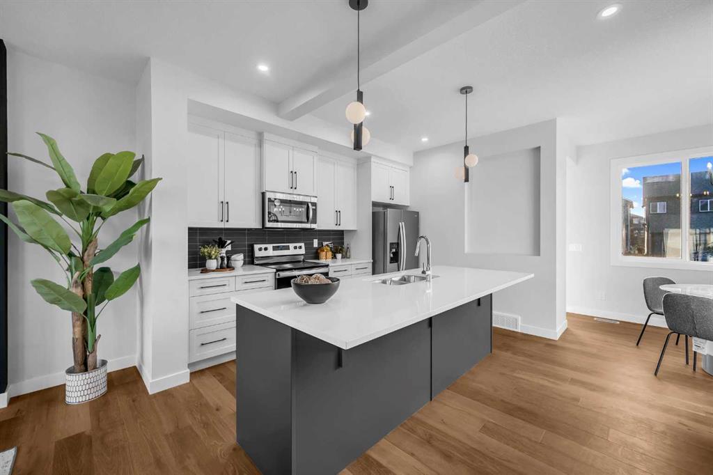 Welcome! Proudly presented by the founder, this brand-new, never-lived-in semi–detached duplex in Cobblestone Creek, Airdrie blends modern comfort with an unbeatable lifestyle. – Prime location & community: Nestled in a serene, master-planned southwest Airdrie neighborhood—Cobblestone Creek boasts newly completed tennis, pickleball, and basketball courts, expansive parks, and a network of lush walking paths. It’s directly connected to Chinook Winds Regional Park and just across from the future Airdrie Recreation Centre opening in 2025. The newly opened 40th Avenue interchange gives seamless access to Highway 2 and Calgary. – Home highlights: Featuring 3 spacious bedrooms and 2½ bathrooms. The main level delights with a cozy living room fireplace, ceiling-height cabinetry, a stylish central island kitchen with stainless-steel appliances, and elegant stone countertops throughout—including bathrooms and kitchen. A generous dining area and a convenient half bathroom complete the main floor layout. – Upper floor features: The master ensuite impresses with its size, walk-in closet, and private ensuite. The second bedroom also includes a walk-in closet, while the third bedroom offers plenty of space and shares a central second-floor bathroom. – Basement & future flexibility: Enjoy a handy side entry to the basement and existing egress window—ideal for future development or easy access. Lots of potential here for a future possibilities or recreational space. – Outdoor & parking: Step outside to a decent-sized backyard and enjoy the convenience of a two-car concrete pad at the back, plus ample front-yard parking. – Ideal for: First-time buyers or growing families seeking a modern home in a burgeoning, amenity-rich community. And with all the groundwork set, it’s a perfect launch-pad for future personalization. Don’t miss this rare opportunity to own a beautifully appointed, brand-new home in Cobblestone Creek—with exceptional community infrastructure, quick access to Calgary, and a dynamic new recreational hub just steps away.