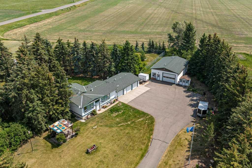 Private acreage surrounded by loads of mature trees with an appealing Bi Level with various upgrades, 3 car heated garage, a heated shop and very quick access to Okotoks (just 5km/8 min). This 5.08 acre acreage provides an atmosphere of serenity and sense of escape, but still so close to the many amenities in Okotoks just minutes away. The 29 ft. x 39 ft. bright shop, ideal for home business or a mechanics dream, is insulated & heated with 12 ft. ceilings, separate 100 amp service, 14 ft. X 12 ft. shop door, new infrared gas heaters, separate office with heater, telephone and Cat 5 computer connections, separate gas line and 6 inch concrete floor. If you have pets, there is approximately a half acre of fenced yard. The property also has underground sprinklers, a 12 x 10 pergola with deck for outdoor meals or entertaining and a gated entrance for security, paved driveway (resealed twice) and a storage shed next to the shop. There is also a 20 ft. x 28 ft. storage building on the property. Surrounded by a large farmer’s field provides additional privacy, so virtually no neighbours adjacent to property. This fully developed home has a lovely, inviting country kitchen with massive granite island, gas stove and open to a bright family room with free standing wood burning stove. The main floor also has a living and dining room and primary bedroom with 5-piece en suite that has heated floor and heated towel rack and a walk in closet. The lower level has 2 bedrooms, one with a walk-in closet, den, a spacious rec room with gas fireplace and 4-piece bath. The 3-car garage has a single bay and double bay with infrared gas heaters. This home also has air conditioning.