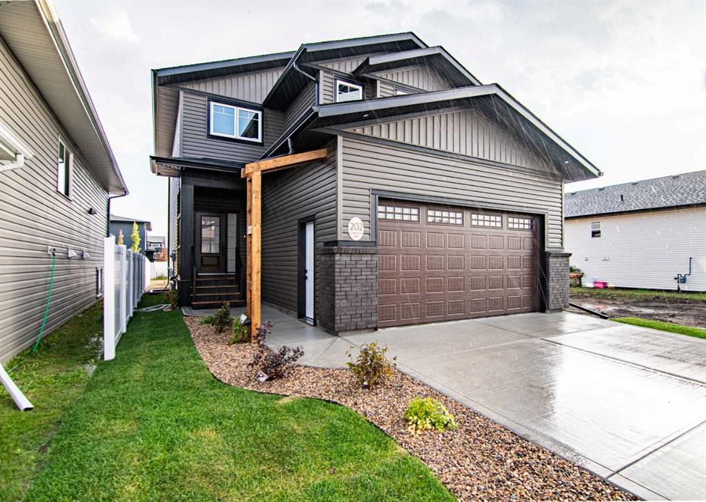 Beautiful New Build in Laredo ~ Nearly Finished! This functional 2 storey offers high end finishings, a great layout and fantastic location with a South facing backyard. The main floor will showcase vinyl plank flooring, neutral paint (white heron), a beautiful kitchen with quartz countertops, upgraded stainless steel appliance package (water line to fridge), a centre island, full tile backsplash and pantry. Off of the garage there is a bench and hooks. Upstairs is a wonderful family layout with three bedrooms plus a bonus room which could be used as a 4th bedroom if needed. The spacious primary suite offers a walk-in closet and 4pc ensuite with a double vanity and quartz countertop and large shower. Upper floor laundry hook ups are an added convenience. The 12x12 covered deck will be one of your favourite places to unwind after a long day. Both front and back will be landscaped and R/I for future heat in the 21x24 attached garage! Possibility for a detached garage to be completed if a buyer wants!