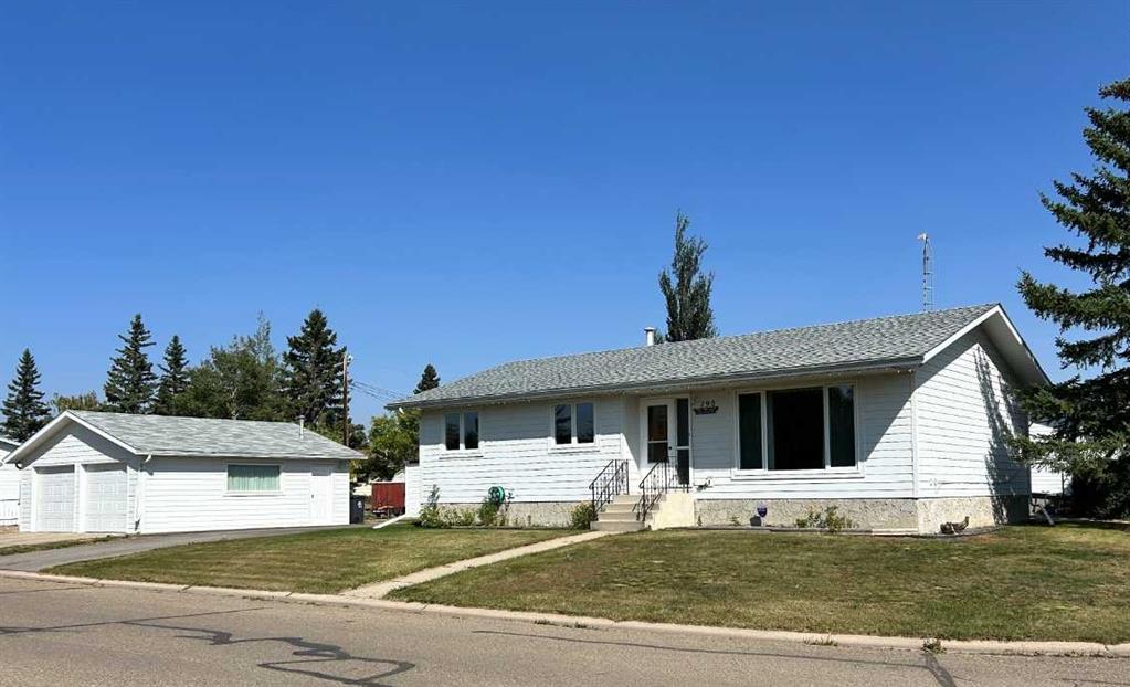 Looking for a wonderful family home in Three Hills with plenty of parking? This four bedroom, two and a half bath bungalow is ideally located near parks, tennis courts, and the outdoor arena. The main floor offers a bright and functional layout with a spacious living room, a well-designed kitchen and dining area, and a hallway leading to three comfortable bedrooms and a four-piece bathroom. Downstairs, you’ll find a huge family room complete with a kitchen area, an additional bedroom, a three-piece bathroom, and abundant storage. The generous back entrance adds everyday convenience with laundry, a two-piece bathroom, and closet space. Step outside to enjoy the deck—perfect for BBQs and summer evenings. The yard is a true bonus, featuring a heated double detached garage with workbenches, a 30-amp exterior plug for your RV, and a handy storage shed. The owners have completed many upgrades over the years, including vinyl windows (2004), shingles (2015), composite siding (2022), and a water heater (2018). This move-in ready home offers space, functionality, and great updates—come see it for yourself!