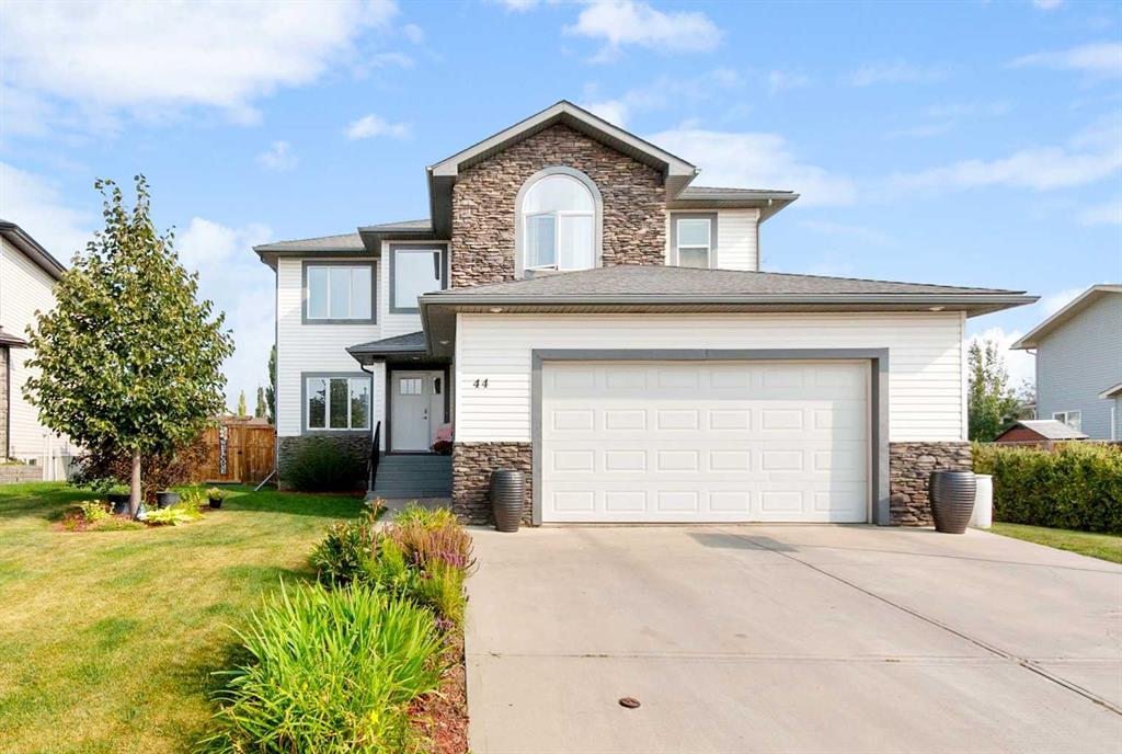 Beautifully maintained 5-bedroom, 4-bathroom home offering over 2844 sq. ft. of perfectly designed living space. Nestled on a fully landscaped lot that backs onto a serene green space. This fully finished two-storey features a spacious main floor with a large living room, soaring ceilings, gas fireplace, and abundant natural light. Direct access to a low-maintenance composite deck and private backyard makes indoor-outdoor living seamless. The recently renovated kitchen includes newer stainless-steel appliances, a large central island, and a walk-through pantry with direct access to the heated double garage(with in floor heat) — perfect for busy families. The main floor laundry room and a 2-piece bath complete this level. Upstairs, the primary suite includes an electric fireplace, walk-in closet, and a 5-piece ensuite. Two additional bedrooms and a 4-piece bath complete the upper floor. The fully finished basement features two more bedrooms, a 3-piece bath, a cozy family room, and a utility/storage room and has infloor heat. The backyard is a private retreat with a composite deck, lower patio (hot tub included), and mature landscaping. Located in a desirable, family-friendly area with no rear neighbors — this home truly has it all.