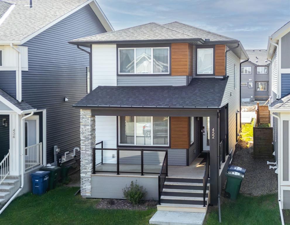 Step inside this stunning Shane Homes masterpiece, offering 4 bedrooms, 3 bathrooms, and a thoughtfully designed layout in the highly anticipated southwest Airdrie community of Cobblestone. Developed by the reputable Melcor, Cobblestone blends modern living with forward-thinking infrastructure—promising outstanding commuter convenience with the upcoming HWY 2 overpass and planned 40th Avenue connection. From the moment you arrive, the home’s curb appeal and traditional lot placement set the tone. Inside, you’re greeted by a welcoming foyer that’s as practical as it is inviting, leading directly to a main-floor bedroom and full bathroom—perfect for overnight guests, multi-generational living, or a private home office. At the heart of the home, the open-concept main living area is a showstopper. Wide-plank luxury laminate flooring flows effortlessly through the space, complementing the sophisticated two-tone kitchen cabinetry, full-height uppers, quartz countertops, designer tile backsplash, and stainless steel appliances. A generous island makes casual meals and conversation a breeze, while the walk-in pantry keeps your kitchen beautifully organized. The bright dining area seamlessly connects to the backyard, and the airy living room is perfect for both relaxed family evenings and lively entertaining. Upstairs, you’ll discover two spacious bedrooms with ample closets, a stylish four-piece bathroom, and a convenient laundry area. The primary suite offers a peaceful retreat, complete with a spacious walk-in closet and a polished ensuite featuring quartz counters and elegant fixtures. The lower level provides exciting potential, with a private side entrance and rough-in plumbing for a future bathroom—perfect for creating additional living space. Outside, you’ll appreciate the 20 x 22 poured concrete garage pad in the backyard, plus fresh sod landscaping in the front yard. With future green spaces, schools, and walking paths connecting to Chinook Winds Park, Cobblestone offers an unbeatable combination of comfort, convenience, and community spirit.