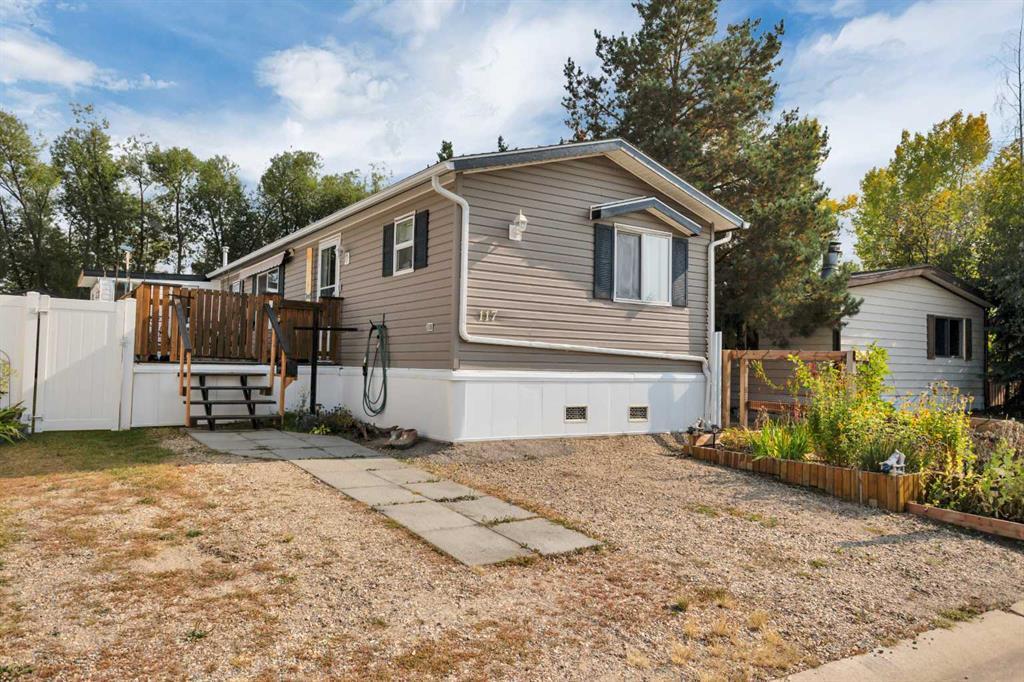 Visit REALTOR® website for additional information. This beautifully renovated 3 bed, 2 bath manufactured home in Innisfail offers a bright, functional layout with skylights, a cozy sunroom, a spacious deck, and a landscaped yard. Step inside the living room showcasing a striking feature wall & vinyl plank flooring, adding both warmth and elegance throughout. The kitchen has been beautifully updated with an abundance of stylish two-tone cabinetry, a large island, bright skylight, walk-in pantry, gas stove, and stainless appliances. The spacious primary suite offers a luxurious 4-piece ensuite with a jetted tub and walk-in closet. Two additional bedrooms and a modern 3-piece bath provide plenty of space for family or guests. For everyday ease, laundry is included. Enjoy time in the 3-season sunroom—heated with an electric unit—perfect for relaxation. From both the front and back doors, you’ll find a massive deck designed for entertaining, barbecuing, or simply unwinding. There’s ample room for flowers, water features, and hanging baskets, plus a convenient crank-out awning that creates a shaded retreat at the touch of a handle. Outside, the property has some vinyl fencing and a roof that’s only a few years