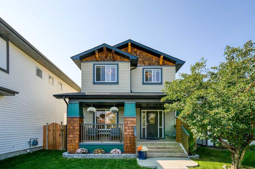 Welcome to 227 Reunion Court NW — a charming two-storey home tucked into a quiet cul-de-sac, just steps from the local K–8 school. This property combines modern updates with the warmth of a mature, family-friendly community. The inviting front porch sets the tone, leading you inside to a bright and functional main floor. The heart of the home is the open-concept kitchen, featuring a large island, striking backsplash, and plenty of cabinetry for storage. The adjoining dining area is filled with natural light, while the cozy living room offers a gas fireplace and custom built-ins — the perfect space for family nights. A main floor office, powder room, and a spacious front entry with built-in bench and walk in closet add convenience and everyday functionality. Upstairs, you’ll find three bedrooms, including a comfortable primary suite with a walk-in closet and stylish ensuite featuring an updated vanity, large jetted soaker tub and fancy tiled shower. The secondary bedrooms share a refreshed bathroom, and the upper-level laundry room makes busy family life a little easier. The private backyard includes a large, heated 24x24 detached garage — ideal for vehicles, storage, or a workshop — plus room to personalize the outdoor space to your needs. With recent updates like new carpet, fresh paint, new light fixtures, central air conditioning, central vac, and newer washer and dryer, this home is ready for its next family. Located in Reunion, one of Airdrie’s most sought-after neighbourhoods, you’ll love the easy access to schools, parks, pathways, and amenities. This is the perfect blend of comfort, convenience, and community.