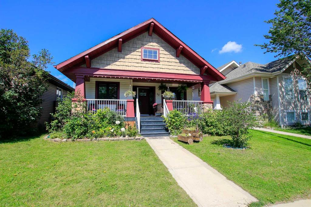 FULLY DEVELOPED 4 BEDROOM + DEN, 3 BATH BUNGALOW ~ OVER 1200 SQ. FT. ABOVE GRADE ~ NEW TRIPLE PANE WINDOWS ~ HEATED DOUBLE DETACHED GARAGE ~ CENTRAL AIR CONDITIONING ~ BRAND NEW SHINGLES ~ South east facing covered front veranda welcomes ~ The living room has large windows and is centred by a cozy fireplace with a tile surround ~ Home office/flex space has more large windows and a closet for storage ~ The kitchen offers a functional layout with plenty of light stained maple cabinets, ample counter space including a large Butcher block island with an eating bar, corner pantry, and opens to the dining room where you can easily host large gatherings ~ Garden door from the dining room leads to the sunny deck, with privacy panels, and the backyard ~ The primary bedroom can easily accommodate a king size bed plus multiple pieces of furniture, has a walk in closet with built in organizers and an updated 3 piece ensuite with heated tile floors ~ Additional main floor bedroom is located next to the 4 piece main bathroom, also with heated tile floors ~ The fully developed basement offers tons of additional space including a recreation room with a wet bar and games table with French doors to the media room, 2 generous size bedrooms, an oversized 4 piece bathroom with a jetted soaker tub, laundry and ample storage space ~ The backyard is landscaped and fully fenced with back alley access ~ 20' x 22' detached garage is heated and insulated plus an additional parking stall with space for a small RV and a 30 amp plug in ~ Located close to multiple parks, playgrounds, walking trails, Red Deer Polytechnic, Heritage Ranch and easy access to QEII.