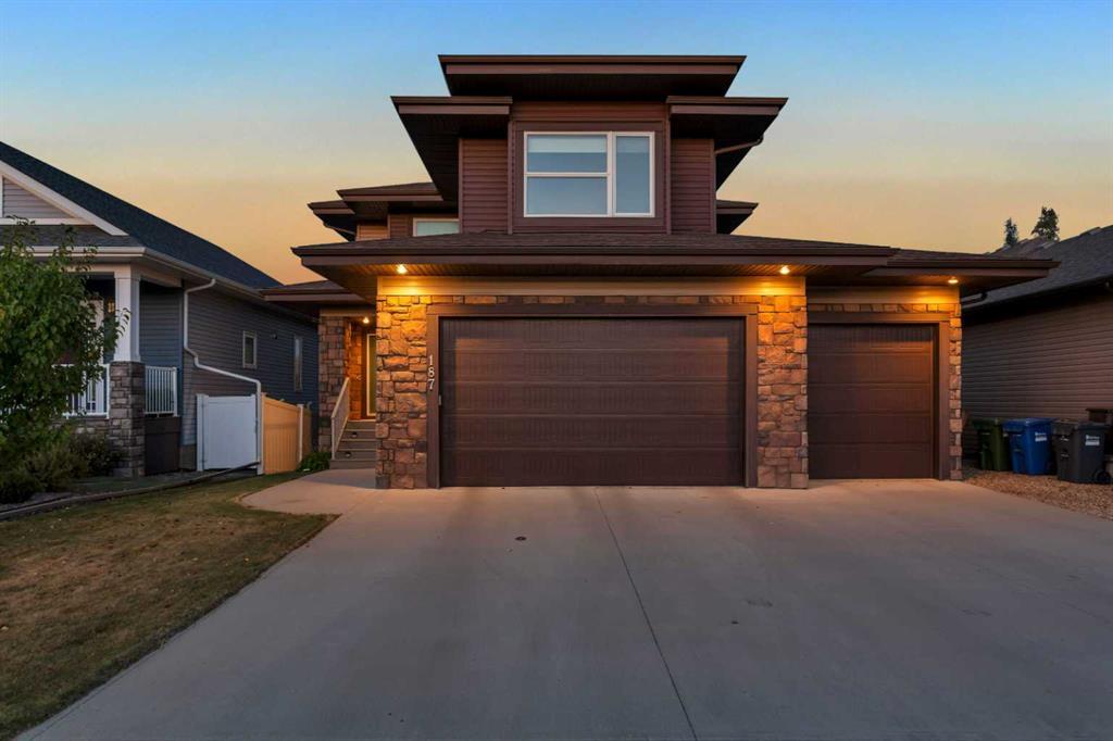 ATTACHED TRIPLE CAR GARAGE and backing on to a GREEN SPACE!! This beautifully maintained 2 storey home offers a perfect blend of hard to find features! Located in the desirable Vanier East neighborhood, 187 Vancouver Crescent is fully finished and begins with a large welcoming foyer at the front entrance plus a mud and main floor laundry room from the heated triple garage entrance - perfectly designed for families. The main floor provides a bright, open concept layout and large windows flood the main area with natural light. The living room includes a feature fireplace with floor to ceiling tile work and is nicely connected to the large dining and kitchen. The heart of the home is the chef's kitchen, it includes quartz counter tops, quality maple cabinetry, a walk-in pantry, stainless appliances and a center island with an eating bar and storage. Durable vinyl plank flooring covers the main area, and a patio door off of the dining area leads to the large rear deck - a great space to enjoy evening BBQ's and watch the kids play in the fully fenced and landscaped yard. The upper level is ideal, the rear family room captures the beautiful views to the East and is ideal for movie night, there are 3 large bedrooms including the spacious main bedroom, plus a full 4pce bath. The main bedroom is a lovely retreat with ample room for a king sized bed, a walk-in closet and beautiful 5pce ensuite with 6' tiled shower, soaker tub and dual vanities. The fully finished WALK-OUT basement includes a large rec room, guest bedroom, full 4pce bath and office nook. A ground level concrete patio is another great spot to gather outdoors and an evening soak in the HOT TUB is a perfect way to end the day! The nice sized yard is enclosed with vinyl fence on either side and wrought iron at the back - open the back gate and enjoy the paved walking and biking trails and beautiful walks around the pond with no neighbors behind! Infloor heat in the basement keeps everything warm in the winter and central air keeps it cool in the summer - this truly a terrific family home and in immaculate condition!!