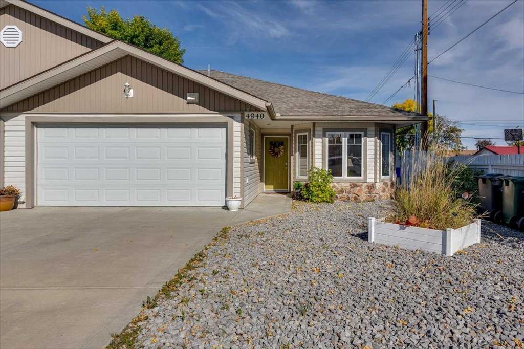 STYLISH, WELL PLANNED, OPEN CONCEPT 1/2 DUPLEX WITH NO CONDO FEES IS FOR SALE IN INNISFAIL! This 3 bed/2 bath beauty has many great features: All living space is on one floor (No basement or stairs), No carpet (laminate & ceramic tile), kitchen island for extra seating, stainless steel appliance's, upgraded ceiling fans, tiled back splash, custom closet system in master bedroom, 2 way cheater door to 4 PC bathroom, blinds, extra wide doors and extra storage cabinets in the large laundry room. There are lots of windows that let in the natural light plus the door from the dining/living room leads to a private fenced patio with interlocking paving stones area that's great for entertaining. Yard maintenance is a breeze with having grey stone and shrubs to give it a classy curb appeal in the front yard. The heated attached double car garage is insulated, drywalled (17'8"x22'11") with extra storage plus hosts the energy efficient hot water boiler system for the in floor heating & air exchanger. This is a very well planned home that is central to walking distance to all the amenities.